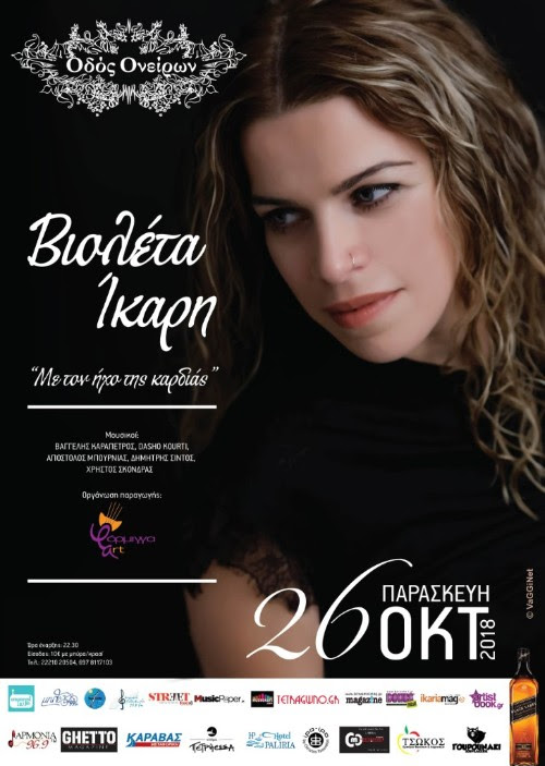 Μετά τις καλοκαιρινές της εμφανίσεις στο πλευρό του Γιώργου Νταλάρα και τη συμμετοχή της στις μοναδικές παραστάσεις του Διονύση Σαββόπουλου, και λίγο πριν την έναρξη της χειμερινής σαιζόν η οποία θα τη βρει στο πλευρό μεγάλων και σπουδαίων καλλιτεχνών, η Βιολέτα Ίκαρη, έχοντας στα χέρια της, την ολοκαίνουργια πρώτη ολοκληρωμένη της δισκογραφική δουλειά με τίτλο «Έλα και ράγισε τον κόσμο μου», ανεβαίνει στη σκηνή της «Οδού Ονείρων» στη Χαλκίδα, παρουσιάζοντας ένα πρόγραμμα, γεμάτο από τραγούδια, που έχουν μέσα τους τον ήχο της καρδιάς.